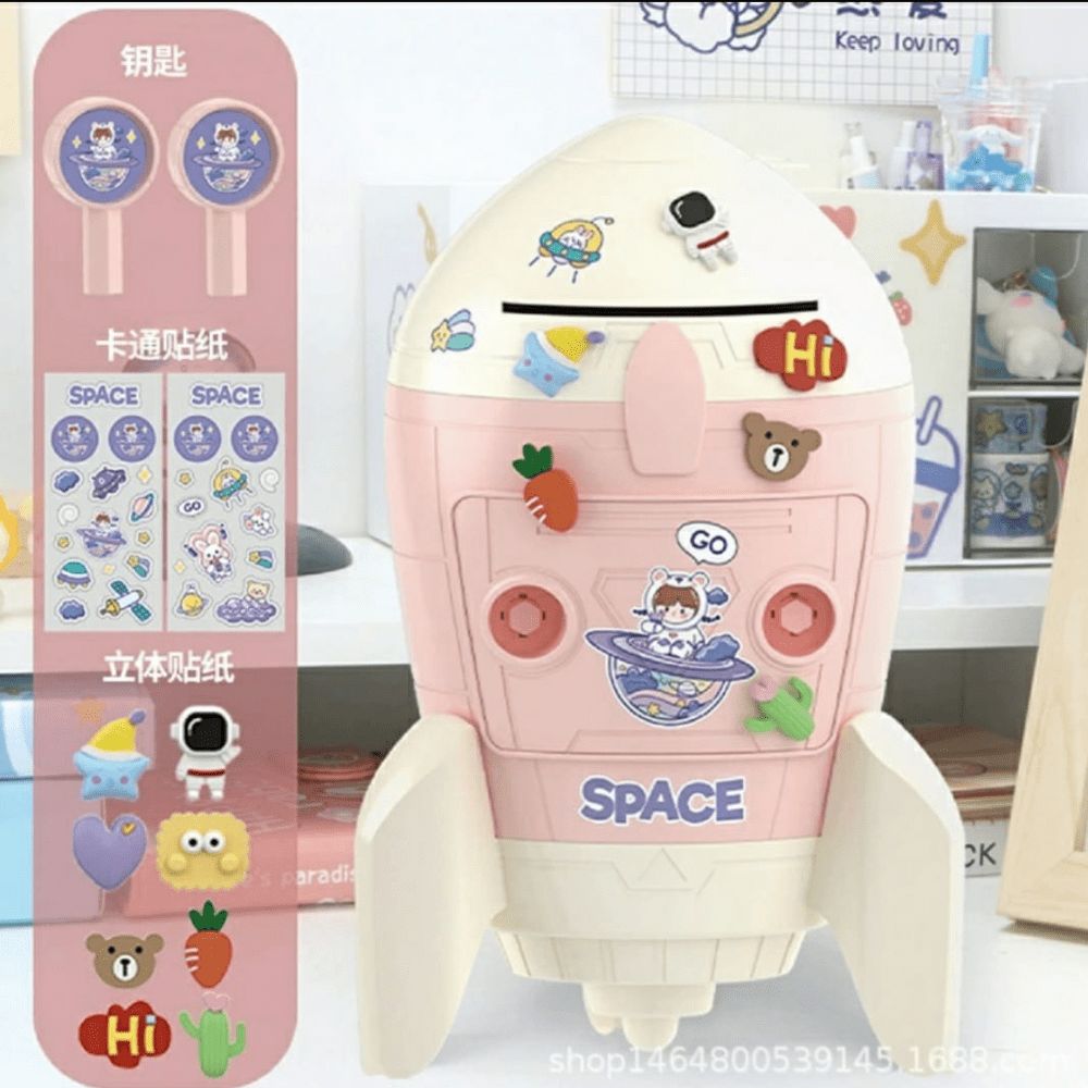 The Rocket in Space DIY Piggy Bank is a fun and creative way for kids to save! Build a 10.5-inch rocket, decorate it with space-themed stickers, and enjoy dual slots for coins and notes. Secure access with a unique dual-key system makes saving exciting and interactive.